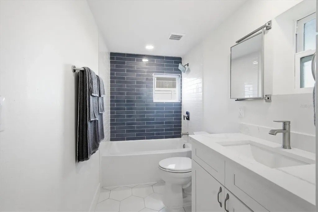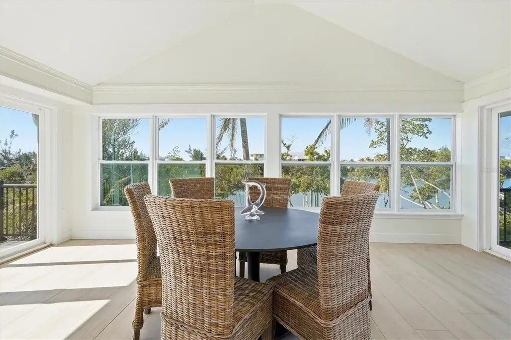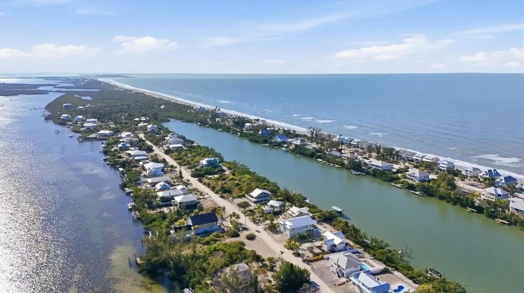 This like new home is ready to move into located on Don Pedro/Palm Island overlooking Bocilla Lagoon. On your approach to the home, you'll see it has a recently updated metal roof. This Key West Style Home is finished in a board and baton hardy board siding with black aluminum railings. The stairs and all decks are built with gray composite material. The waterside open deck is12 x 24. This offers a seating area with full waterfront views over Bocilla Lagoon for enjoying Florida sunsets with sounds of the Gulf. There are 2000 sq feet of pavers under the home and pool area, which is great for outdoor entertaining. There is a private wooden dock with boat lift pilings in place for a future lift. Lush landscaping, beautifully trimmed mangroves, rip rap and large mature coconut palms are aligning the pool area. On entering the home, the first thing you'll notice is the abundance of impact windows and glass doors which offer natural light with an open floor plan and 12' vaulted ceilings throughout. The flooring consists of Andare almond porcelain tile with the bathrooms done in opal white hexagon porcelain tile. The great room which includes the kitchen that has a 4.5' x 12' long waterfall style island/breakfast bar and stainless-steel sink. All countertops in this home are made of solid white/sparkle white quartz. All appliances are matching LG stainless steel, including the stack washer and dryer. The wooden cabinets offer soft close cabinets. The 12 x 20 waterfront dining area is surrounded by glass doors and windows. The primary bedroom has water views and a private bath with floor to ceiling walk in shower with Lenox Caspian porcelain tile walls and cobalt sea pebbles hot glass mosaic flooring. The second bedroom is directly across the hall from a full bath. The third bedroom has its own private full bath with a tub and shower combination. Home measures 1,347 sf - A/C, provided by Seller. If you're looking for high end finishes and island living, you certainly don't want to miss out on this one.
